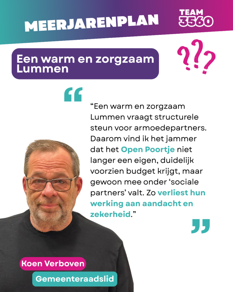 “Dit plan is netjes in balans omdat de rekening verschuift: van de gemeente naar gezinnen, verenigingen, senioren en kwetsbare groepen.”