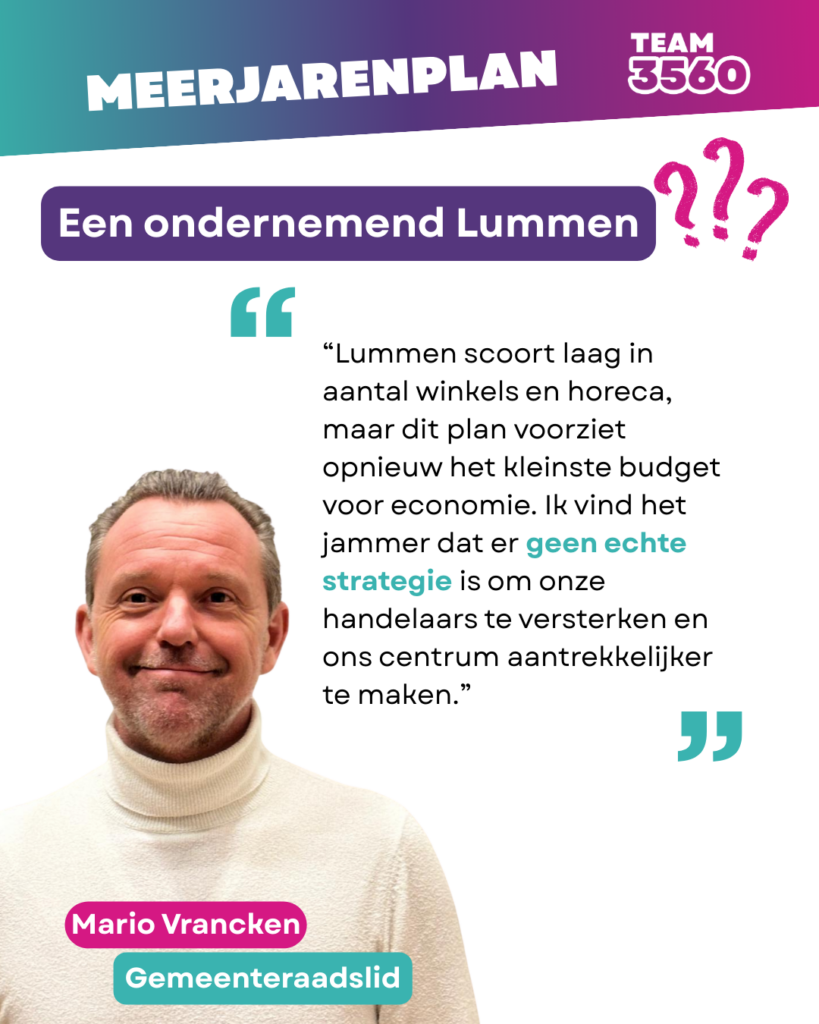 “Lummen verdient geen louter papieren balans. Lummen verdient een toekomstgericht plan dat iedere Lummenaar meeneemt, nu en in de toekomst.”