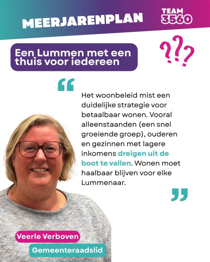 Maar tegelijk staat Lummen voor andere grote uitdagingen, zoals een groeiend aantal ouderen die langer zorg nodig hebben, betaalbaar wonen en welzijn.